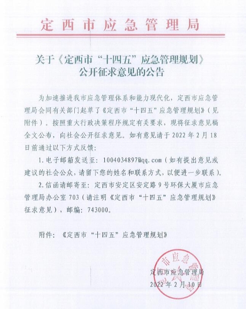 “十四五”期间,全市应急管理工作依据《定西市国民经济和社会发展第十四个五年规划和二〇三五年远景目标》,坚持“以人民为中心”,统筹安全和发展,坚持稳中求进和追赶发展,不断推动应急管理工作追赶进位。